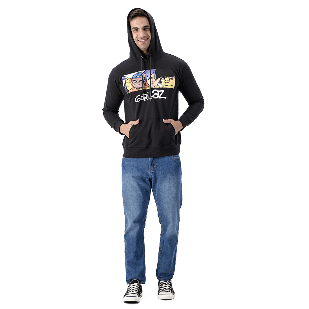 Esta sudadera con estampado de Gorillaz es la mezcla perfecta de estilo y comodidad. Con capucha forrada y jareta ajustable, te mantendrá abrigado mientras te da un toque único y moderno. Su diseño con estampado vibrante y bolsa frontal la convierte en una opción ideal para quienes buscan destacar su personalidad y disfrutar de un look casual y urbano.