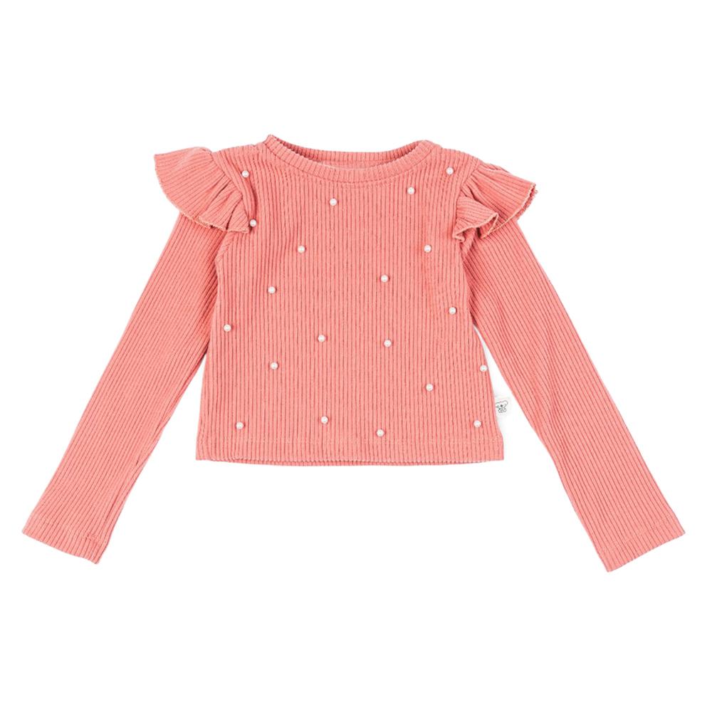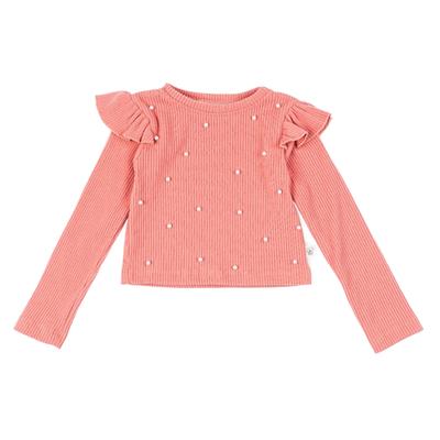 Blusa de manga larga con olán y detalles sutiles.