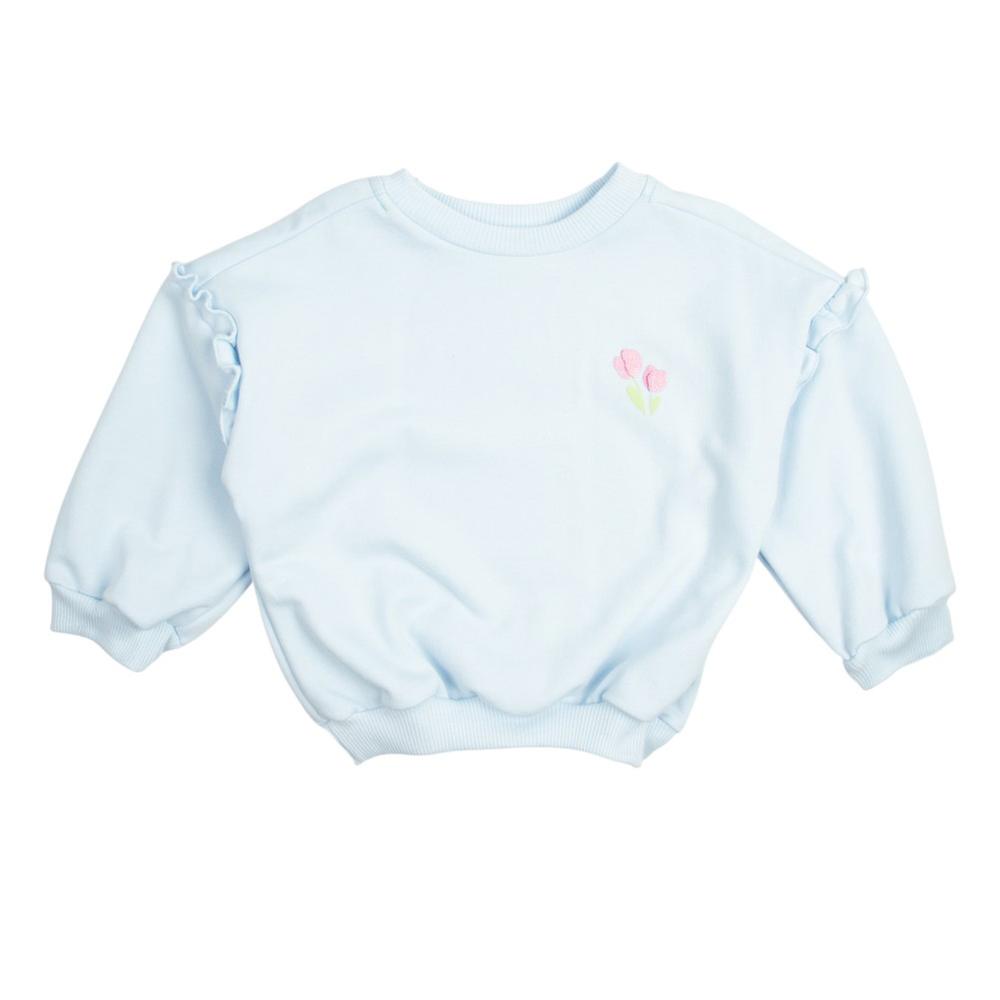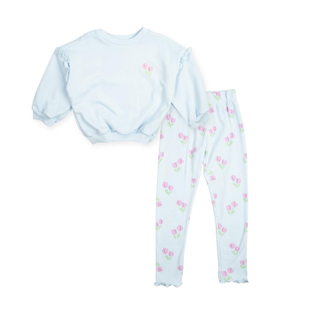 Dale un toque de ternura a tu bebé con este conjunto. La sudadera con olanes en las mangas y el pantalón con diseño full print están diseñados para su comodidad. Un atuendo versátil para cualquier ocasión.