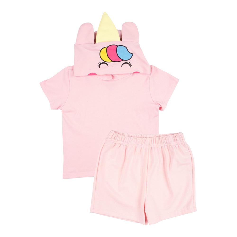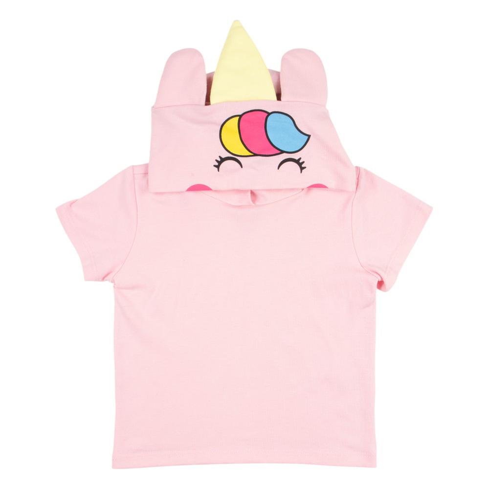 Atributos: Playera de manga corta y capucha con diseño de unicornio Short de cintura elástica y diseño liso