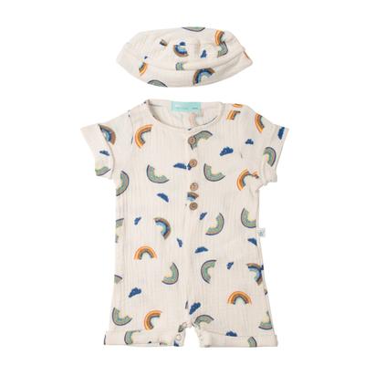 Mameluco Fantastic Bebé Diseño Arcoíris Y Nubes Con Gorro