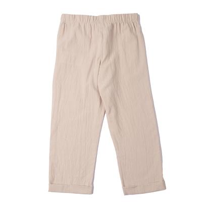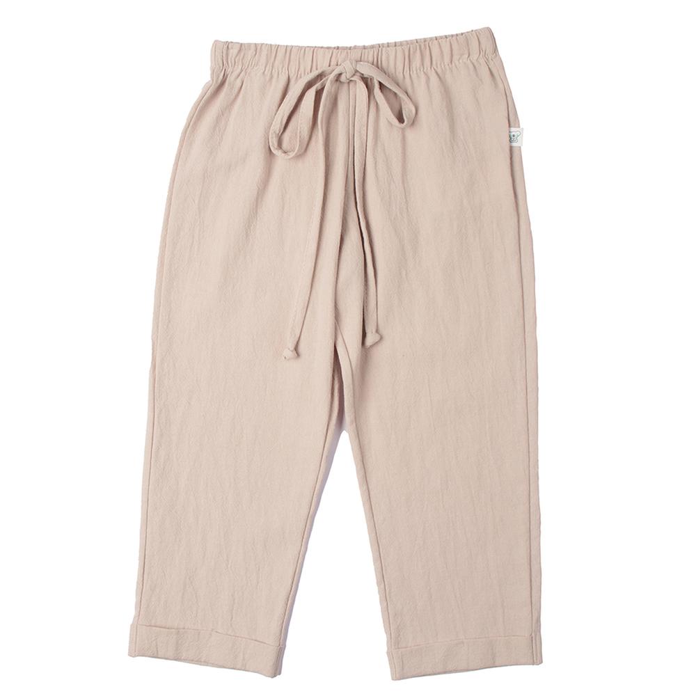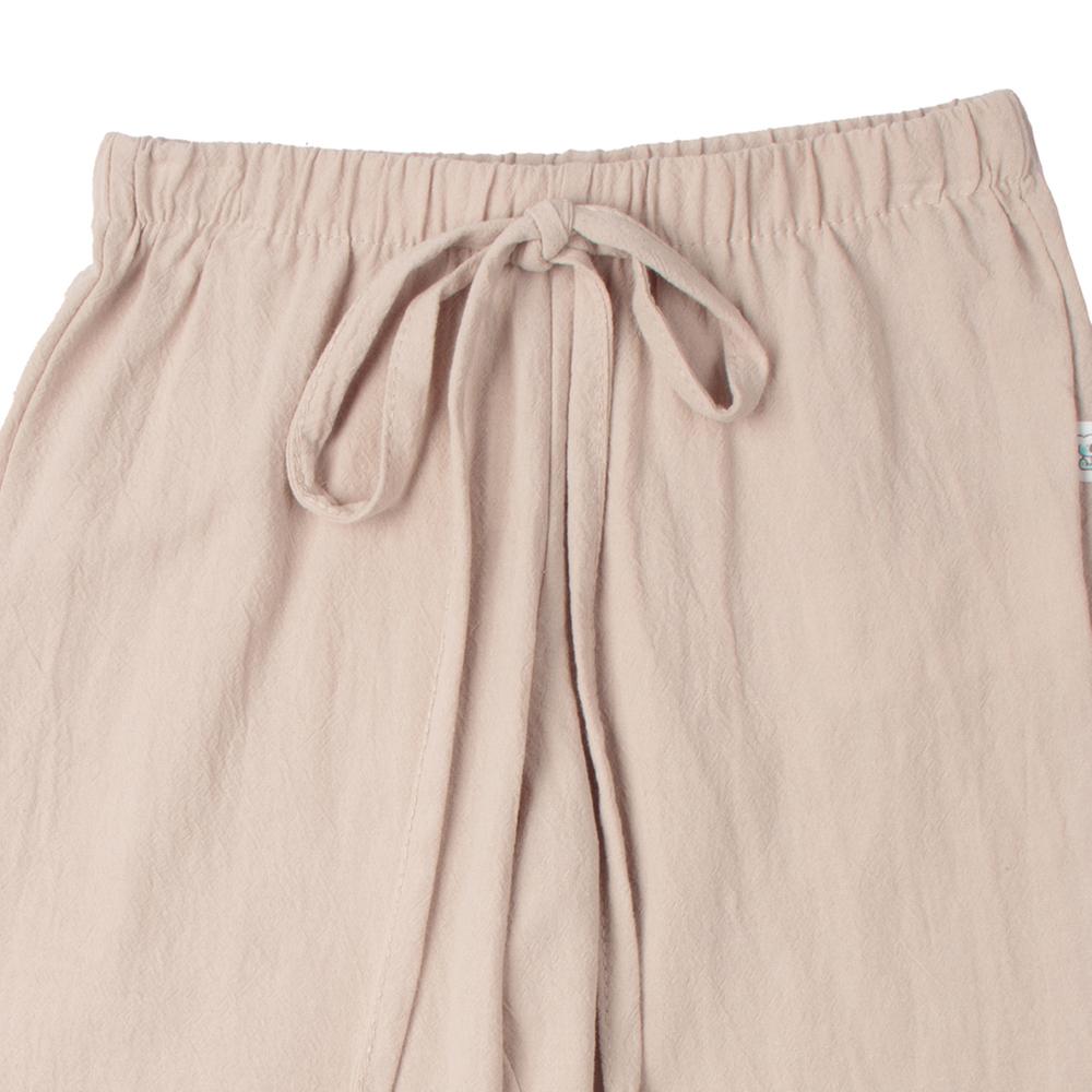 Este pantalón tipo manta ofrece suavidad y frescura, ideal para clima cálido. Su cintura elástica y dobladillo lo hacen cómodo y perfecto para bebés activos.