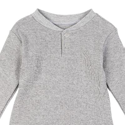 Esta playera acanalada para bebé ofrece suavidad y comodidad en cada uso, ideal para mantener a tu pequeño abrigado sin perder libertad de movimiento. Su diseño liso le da un estilo tierno y versátil, mientras que los botones a presión facilitan vestirlo rápidamente. Una prenda práctica y encantadora para el día a día.
