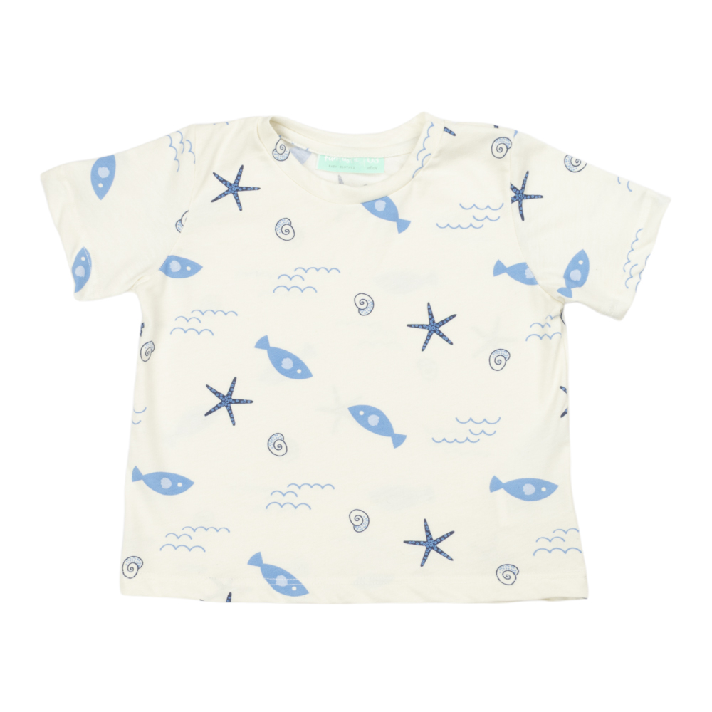 Playera de mangas cortas, cuello redondo y con estampado con diseño acuático