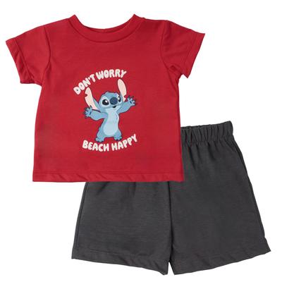 Conjunto para bebé compuesto por playera y short de diseño liso, pensado para brindar comodidad y estilo en cualquier momento del día. La playera de cuello redondo y manga corta con estampado frontal de Stitch aporta un toque divertido y adorable, mientras que el short con elástico en la cintura asegura un ajuste cómodo y seguro. Una prenda práctica y versátil que combina frescura y ternura para los más pequeños.