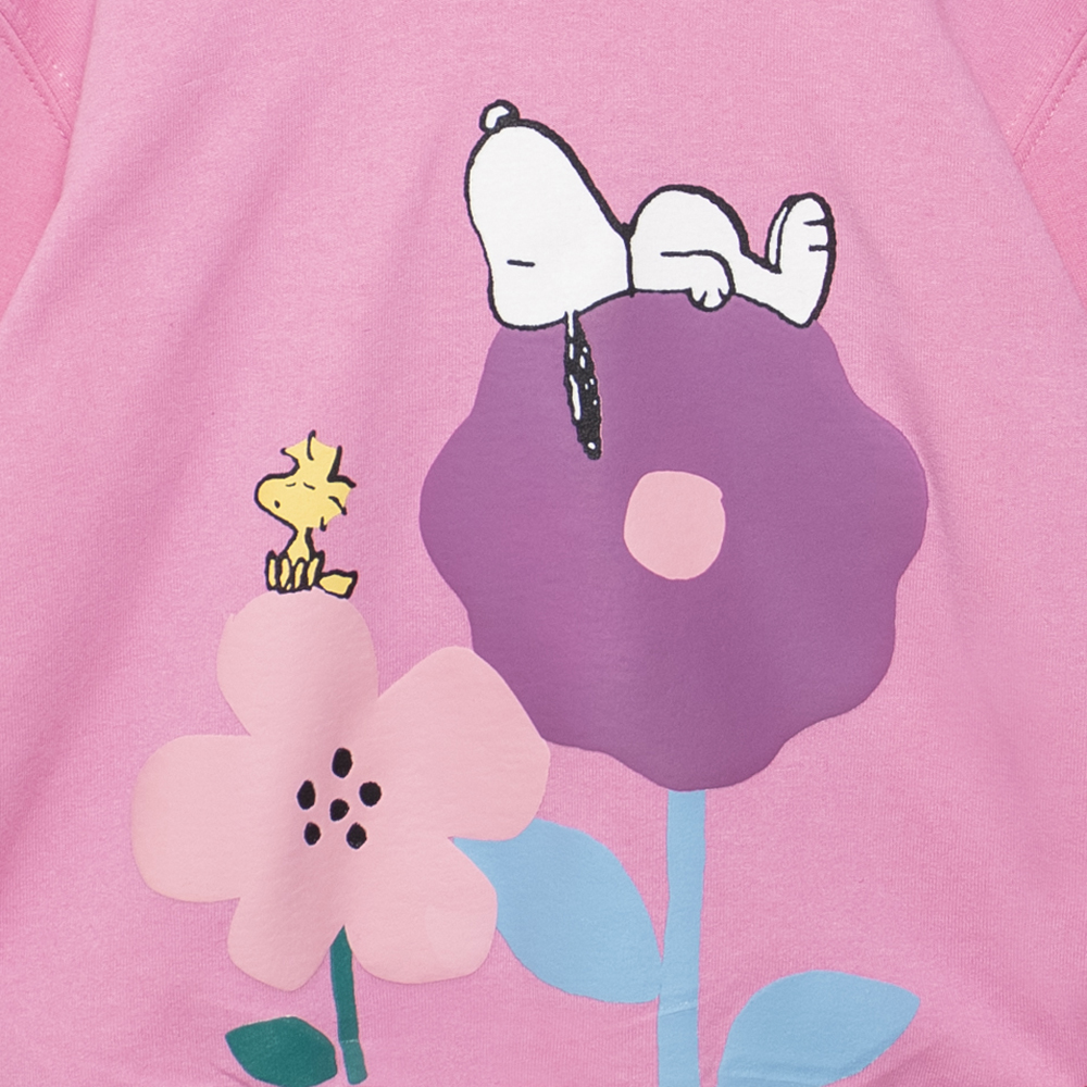 Abriga a tu bebé con estilo con este hoodie de Snoopy. Con capucha y un divertido estampado de Snoopy en el frente, es perfecto para los días frescos y fáciles de combinar. ¡Un look adorable y práctico para los pequeños fanáticos del icónico personaje!