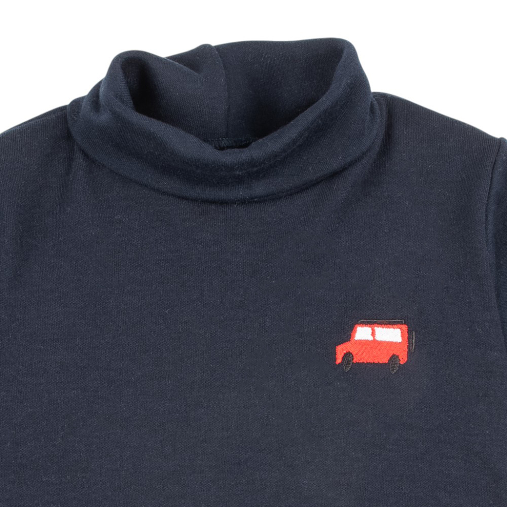 Enciende su estilo (y motor): playera cuello alto con bordado de auto, ideal para pequeños pilotos. Diseño veloz, suave y coquetón.