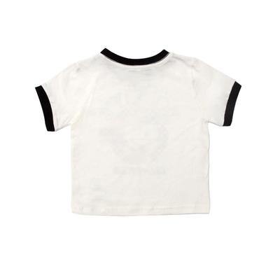 Esta playera para bebé combina estilo y comodidad con un diseño de cuello redondo y manga corta que brinda frescura durante todo el día, mientras que el estampado frontal y los detalles en contraste aportan un toque divertido y moderno ideal para cualquier ocasión