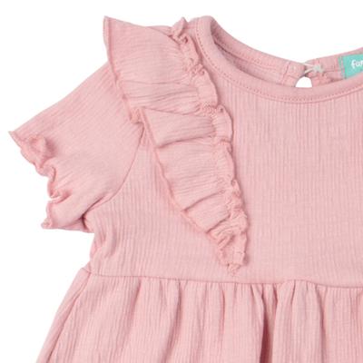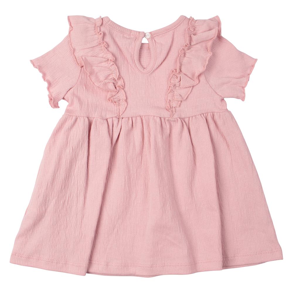 Vestido liso con delicados olanes en pecho que aporta un estilo tierno y cómodo para cualquier ocasión