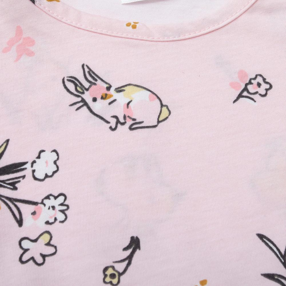 Vestido tierno con estampado de conejos que destaca por su suavidad y diseño adorable. Ideal para cualquier ocasión especial.