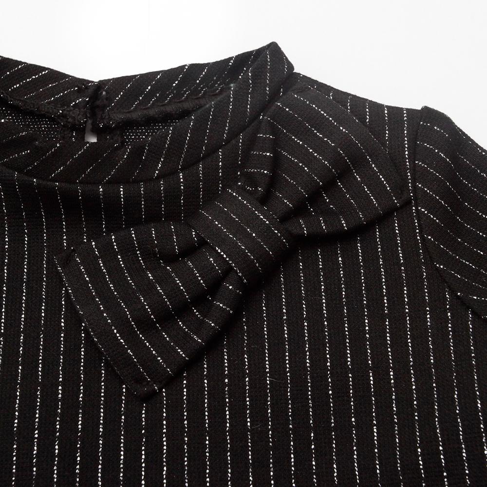 Vestido con diseño de rayas verticales que estiliza la silueta. Su moño decorativo aporta un toque encantador para un look moderno.