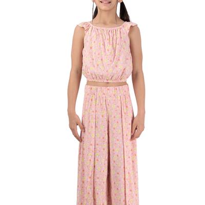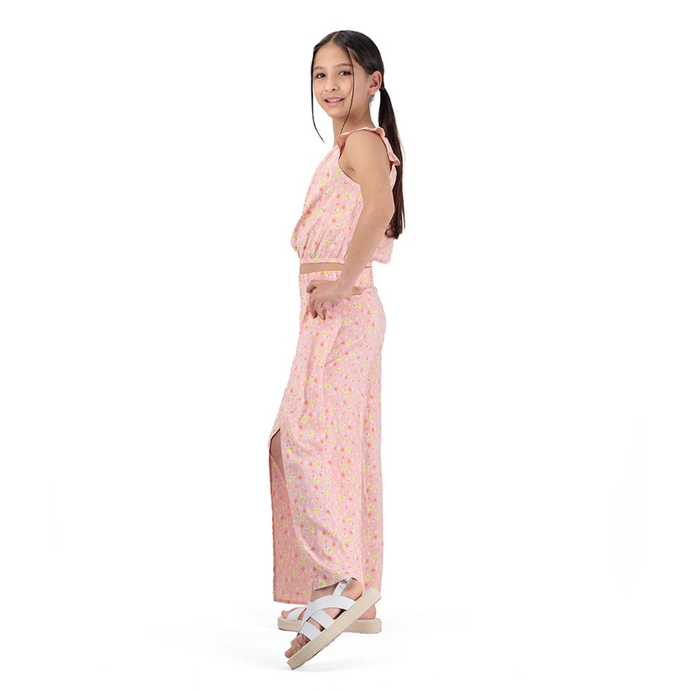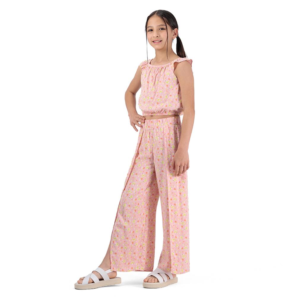 Conjunto Fantastic Niña Top Y Pantalón Ancho De Flores