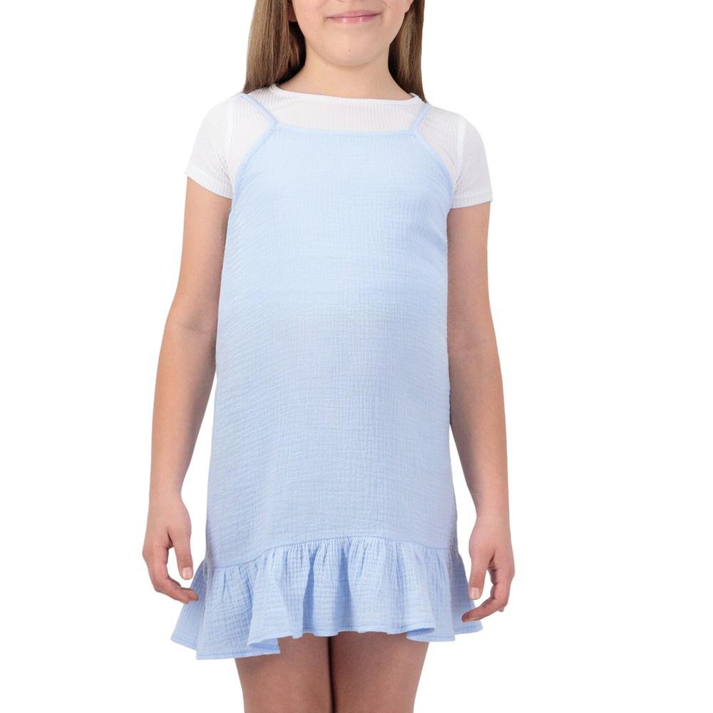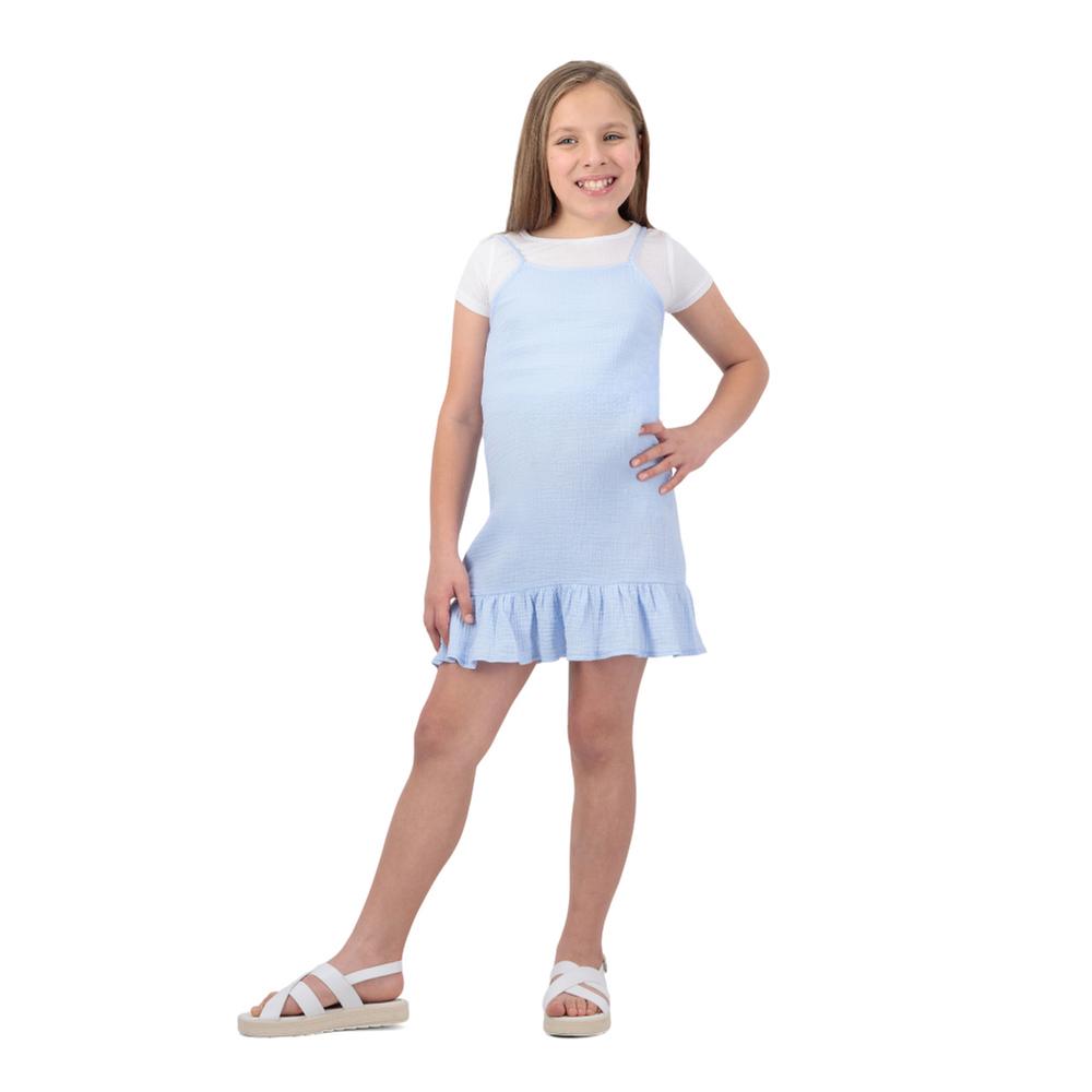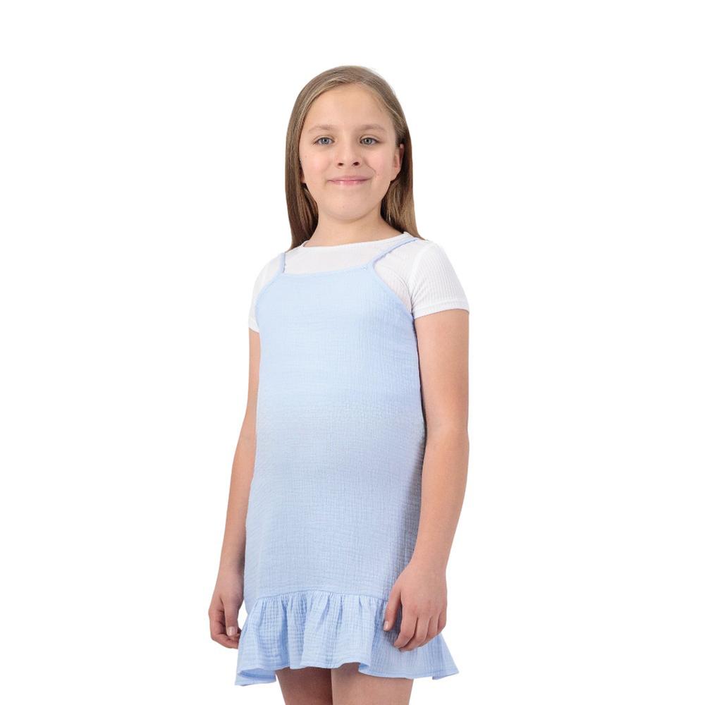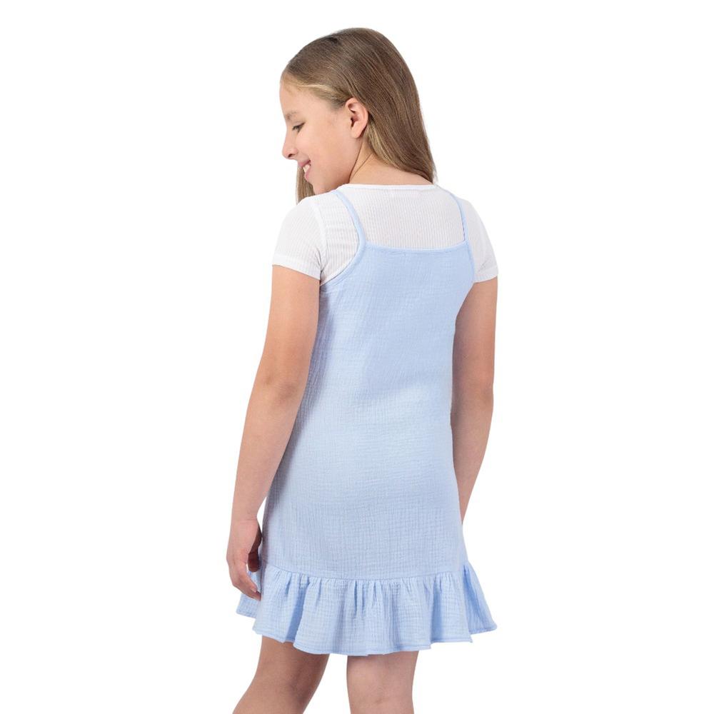 Conjunto Fantastic Niña Vestido Con Tirantes y Olanes Con Playera