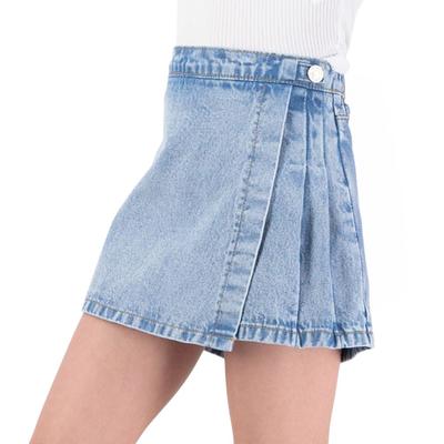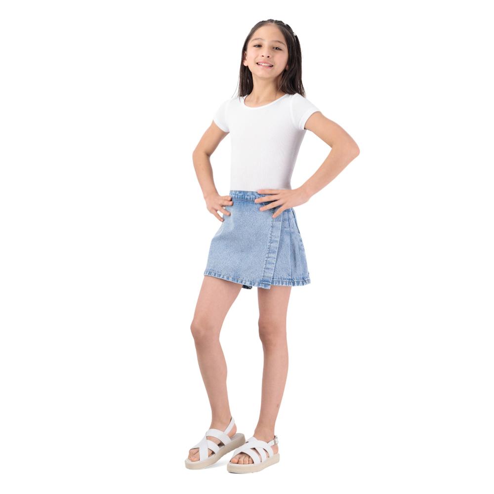 Falda short tableada con frente liso que combina estilo clásico y practicidad. Ideal para looks escolares o casuales