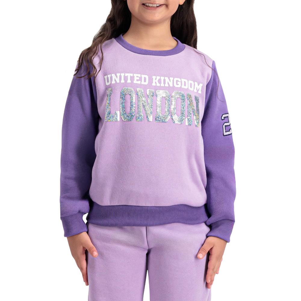 Este conjunto para niña combina estilo y comodidad con un diseño moderno inspirado en la moda urbana. La playera de cuello redondo y manga larga ofrece un ajuste relajado, mientras que el estampado frontal United Kingdom London aporta un toque cosmopolita ideal para un look casual con personalidad.