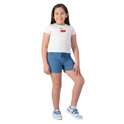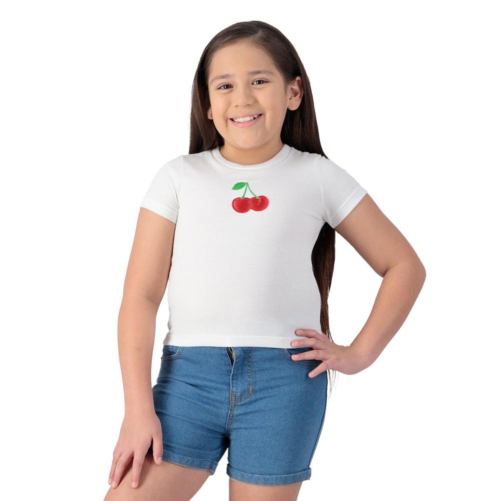 Luce un look dulce y cómodo con esta playera para niña de manga corta y cuello redondo, ideal para el día a día. El bordado en el pecho aporta un detalle delicado y encantador que realza el estilo de la prenda. Perfecta para combinar con pantalones, faldas o shorts, creando outfits frescos y llenos de ternura.