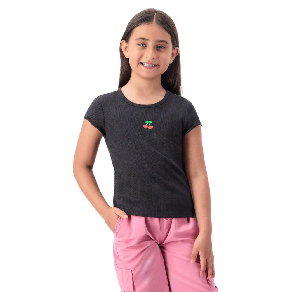 Atributos: Bordado de cereza en el pecho. Cuello redondo y suave. Manga corta para mayor frescura. Ideal para looks casuales de niña.