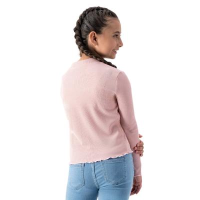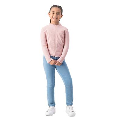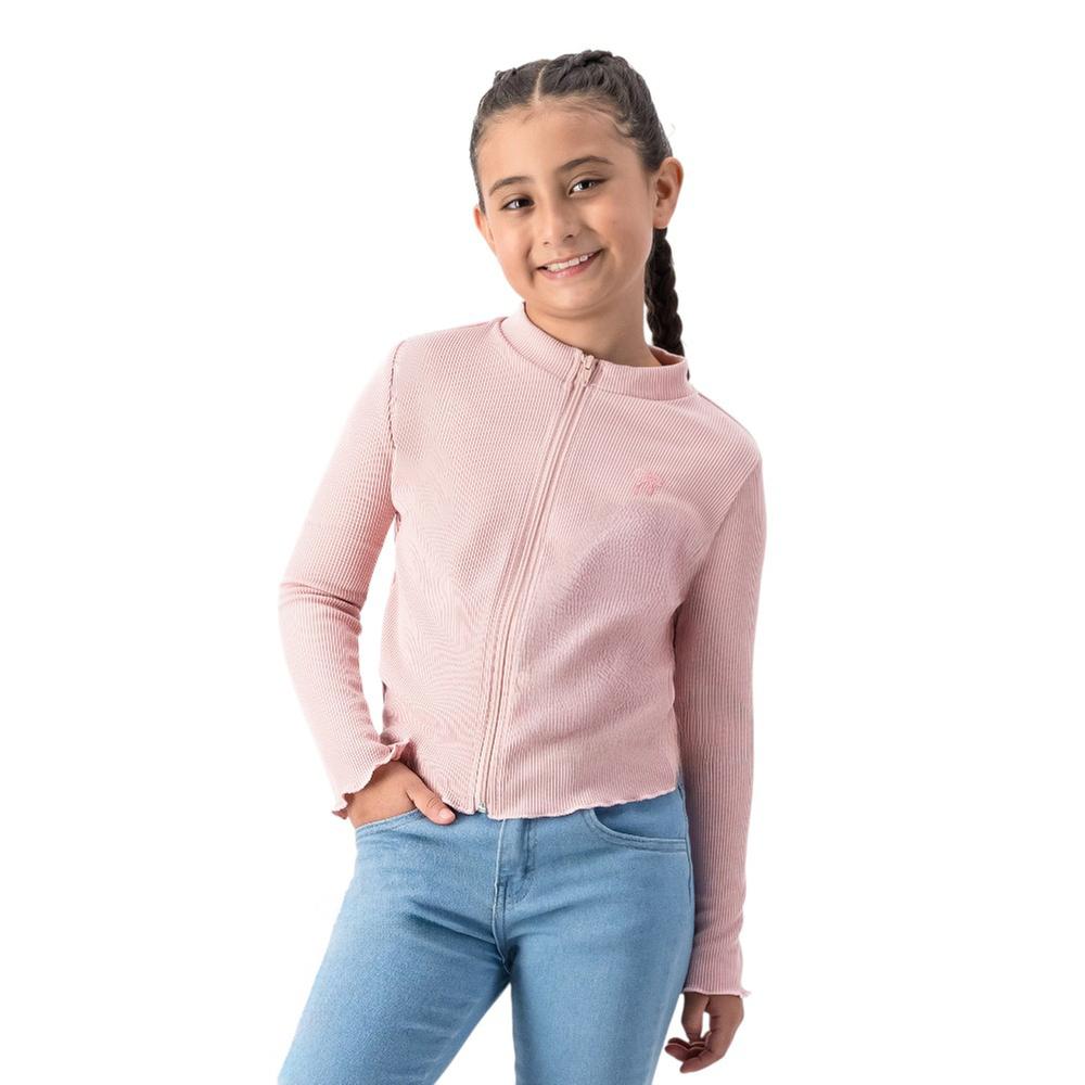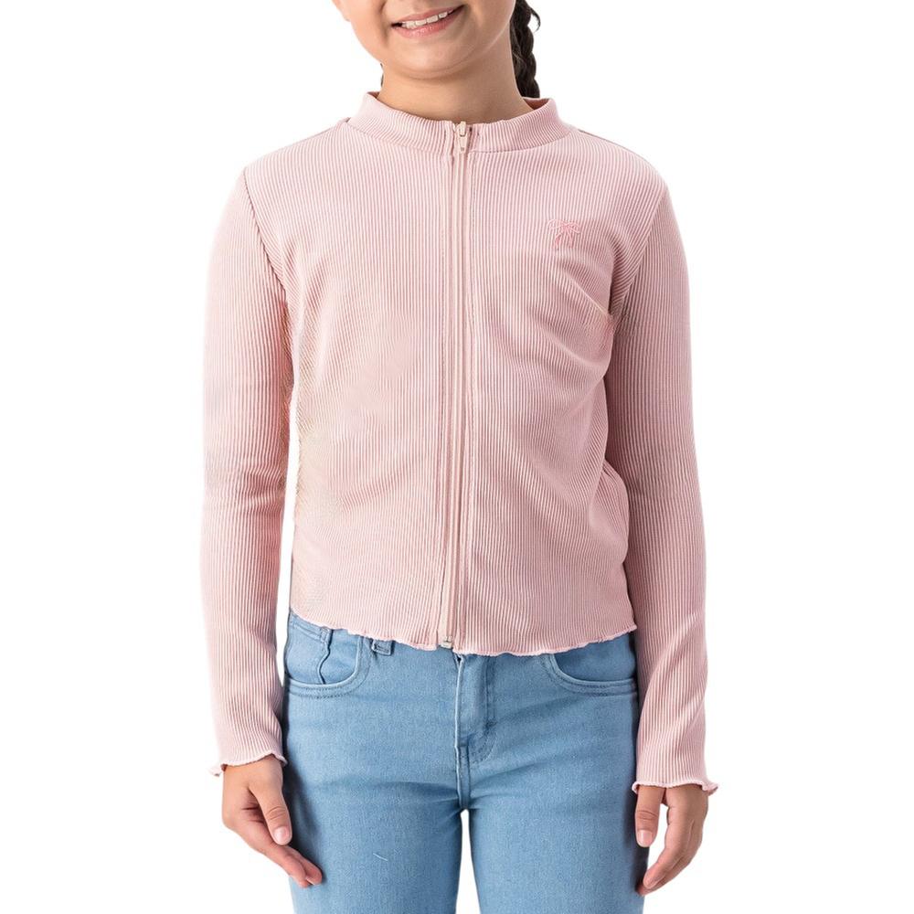 Protege a tu pequeña del frío con esta playera de manga larga para niña. Con cierre de cremallera y cuello redondo, su bordado de moño en el pecho es encantador. El fruncido en puños y ruedo asegura confort. Playera de invierno infantil.