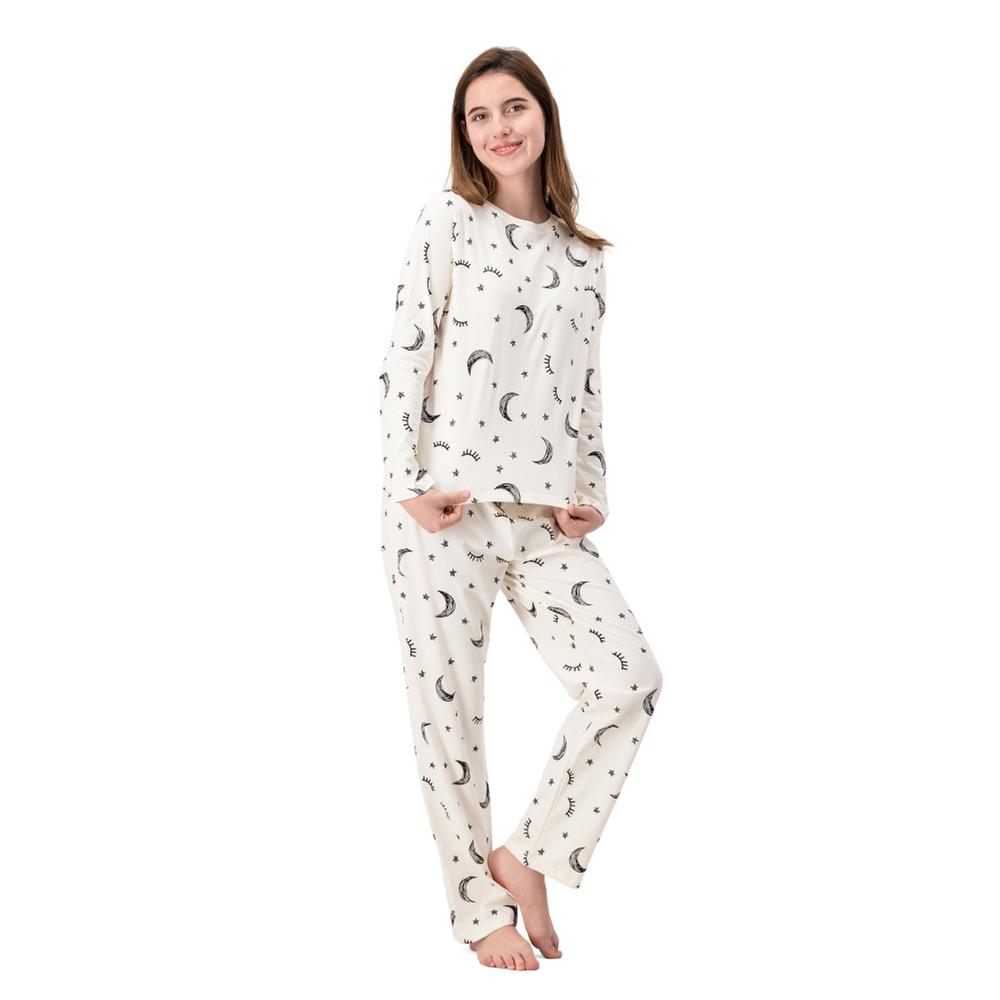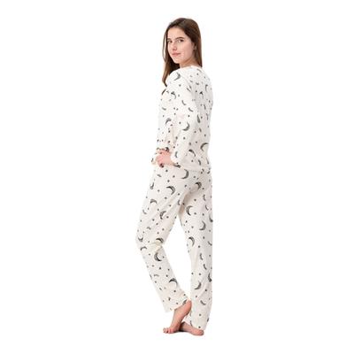 Pijama nocturno con diseño de lunas y estrellas, playera y pantalón full print. Tejido suave y ligero que garantiza confort, ideal para niñas que buscan estilo y ternura durante sus noches.