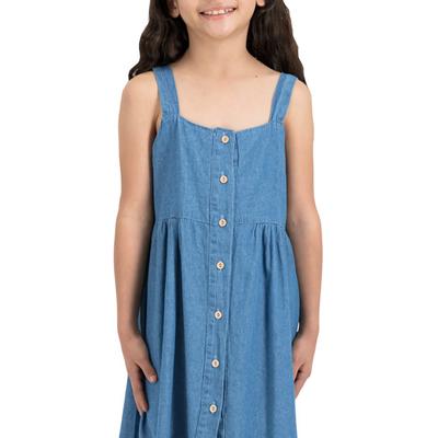 Este vestido para niña combina ligereza y encanto en un diseño fresco ideal para los días soleados. Sus tirantes delgados aportan suavidad y comodidad, mientras que la cintura fruncida le da una silueta adorable y femenina. El cierre de botones en contraste añade un toque distintivo que resalta su estilo, convirtiéndolo en una prenda perfecta para cualquier ocasión.