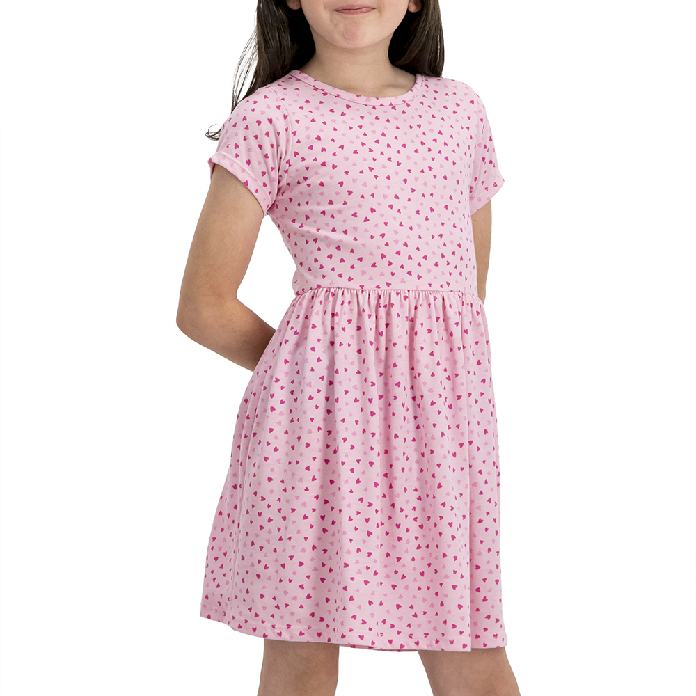¡Nuestra vestido de corazones es perfecto para las pequeñas fashionistas! El estampado completo de corazones lo hace ideal para cualquier ocasión.
