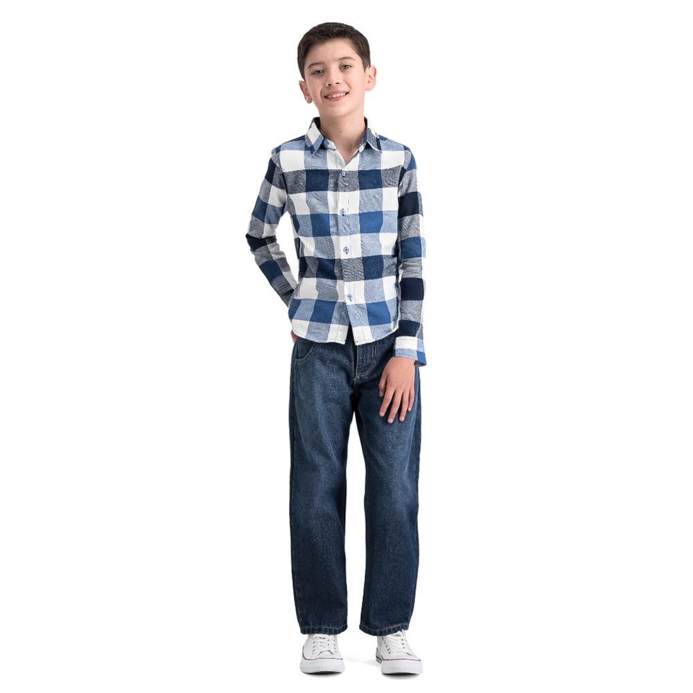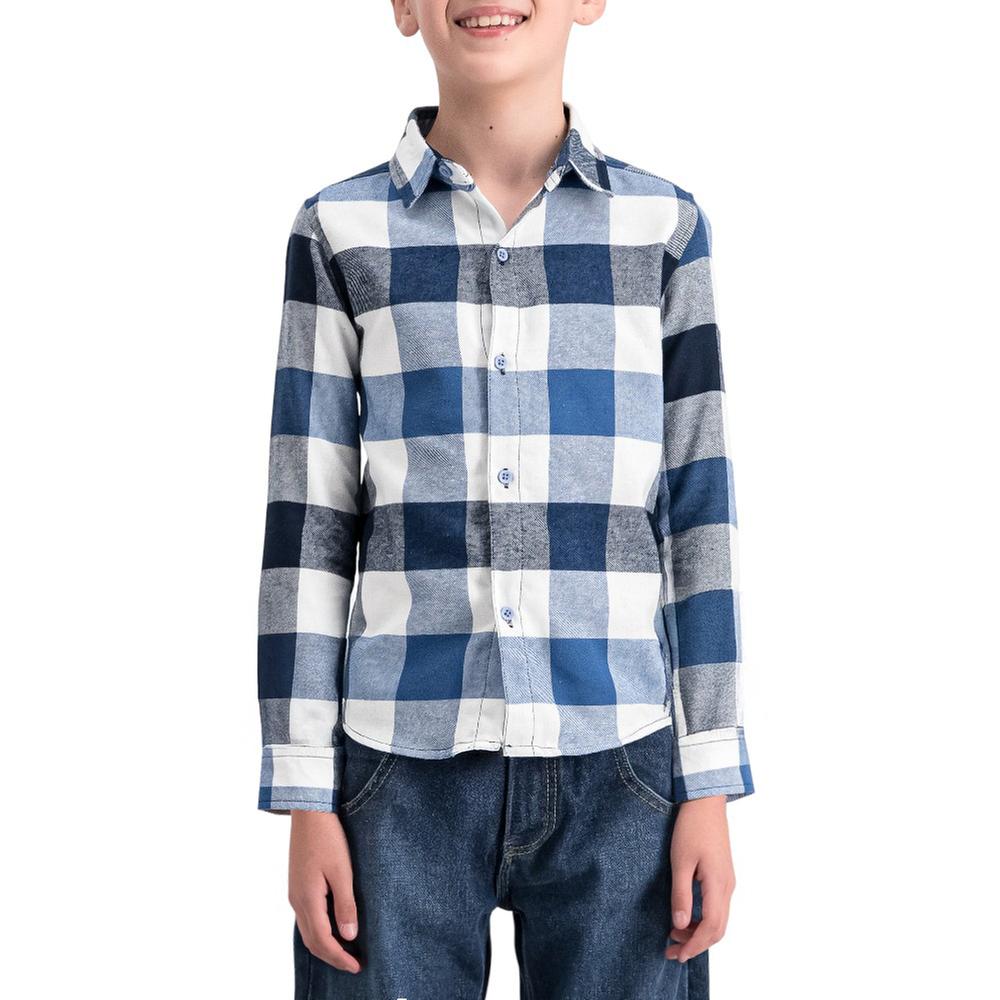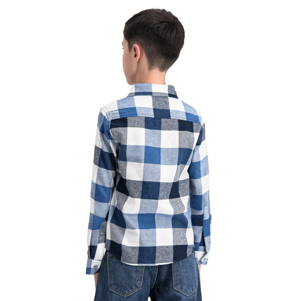 Camisa de manga larga para niño, con diseño a cuadros en tonos azules. Fabricada con una suave mezcla de algodón y poliéster que garantiza comodidad y durabilidad. Perfecta para un estilo clásico y casual en cualquier ocasión.
