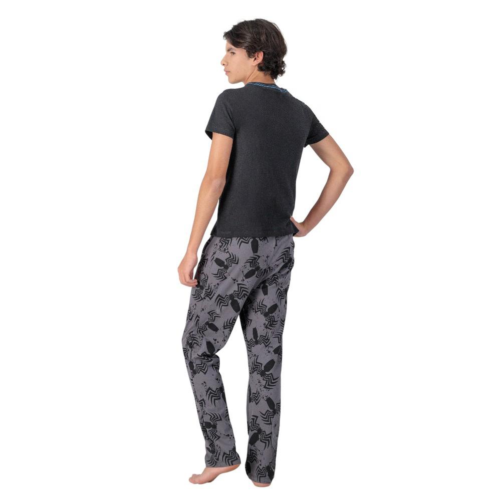 Haz que la hora de dormir o los días de descanso sean mucho más divertidos con este pijama inspirado en Venom de Marvel. Su playera de manga corta con cuello redondo y estampado frontal del icónico Gymbiote, junto con el pantalón de cintura elástica y diseño full print, ofrece comodidad y estilo que los pequeños fans adorarán. Ideal para soñar con aventuras y sentirse como un verdadero héroe en casa.