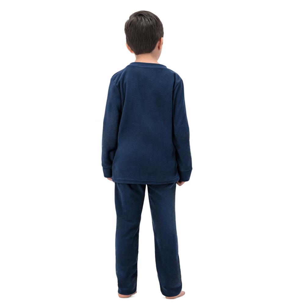Pijama para niño que combina comodidad y estilo con una sudadera de cuello redondo y diseño frontal divertido. La prenda cuenta con ajuste en puños para mayor seguridad y confort, mientras que el pantalón de diseño liso incluye cintura elástica que garantiza un calce cómodo y adaptable para un descanso tranquilo.