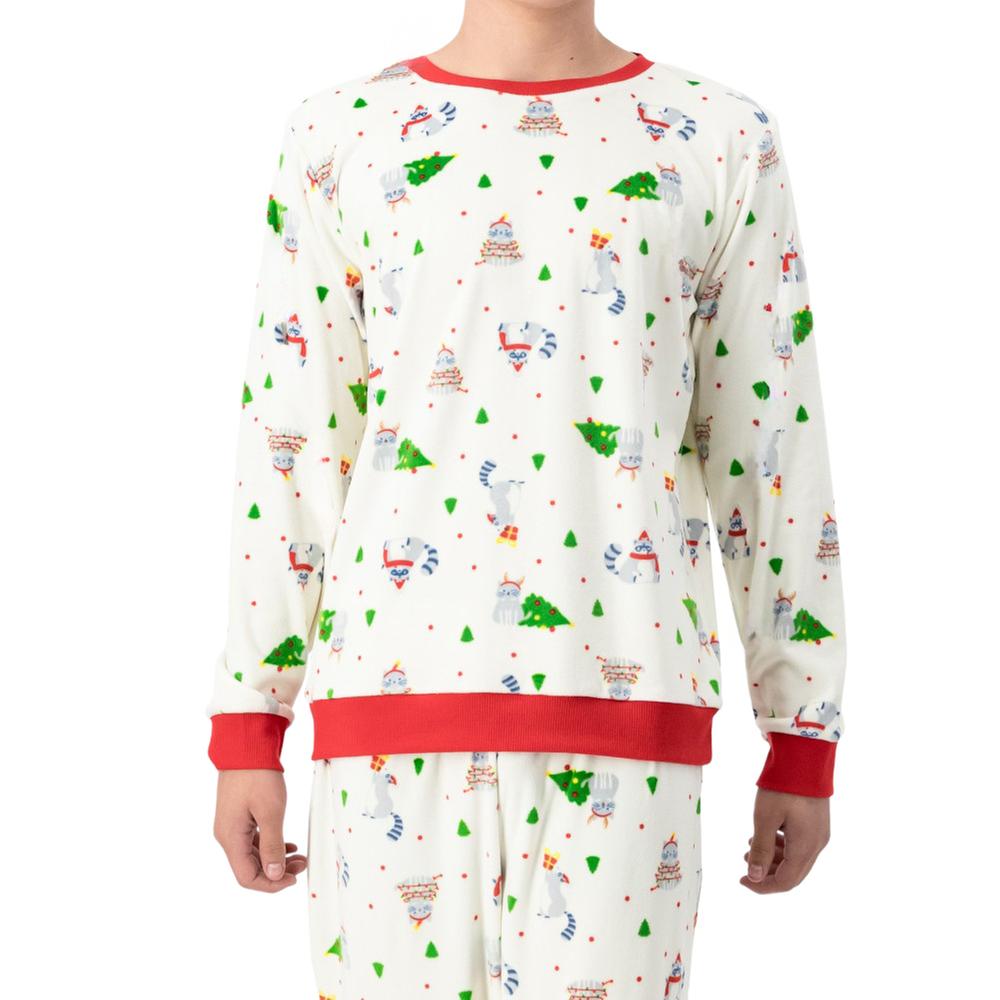 El espíritu festivo en casa. Esta pijama navideña de diseño full print incluye un pantalón con elástico y una sudadera de cuello redondo con mangas en contraste.
