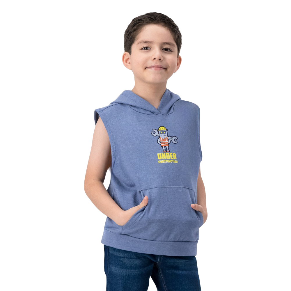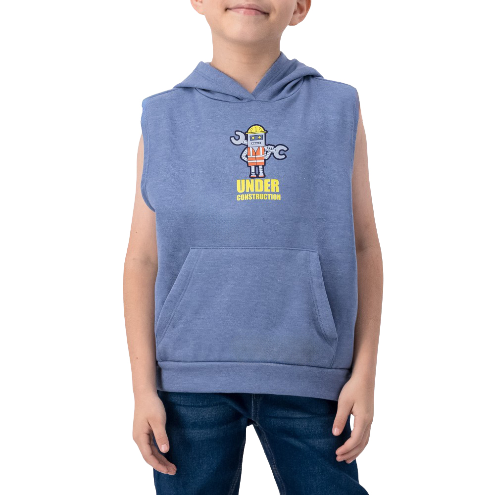 Atributos del producto: Capucha cómoda que añade un estilo desenfadado y práctico Diseño sin mangas que permite mayor ventilación y movilidad Bolsa frontal tipo canguro para guardar lo esencial con facilidad Estampado en el pecho con diseño Under Construction que destaca por su originalidad