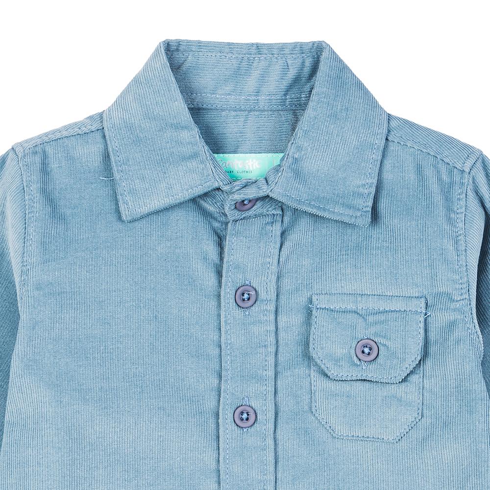Esta camisa para bebé combina comodidad y estilo en un diseño pensado para vestir al pequeño con encanto en cualquier ocasión. Su diseño liso aporta un toque sencillo y elegante, mientras que la bolsa frontal y los botones al tono ofrecen funcionalidad y detalle delicado. Las mangas largas brindan protección y confort, haciendo de esta prenda una opción práctica y adorable.