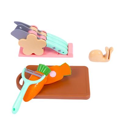 Entretenidos sartenes con tapa, ollas, palas para cocinar, pelador, zanahorias y cuchillo
