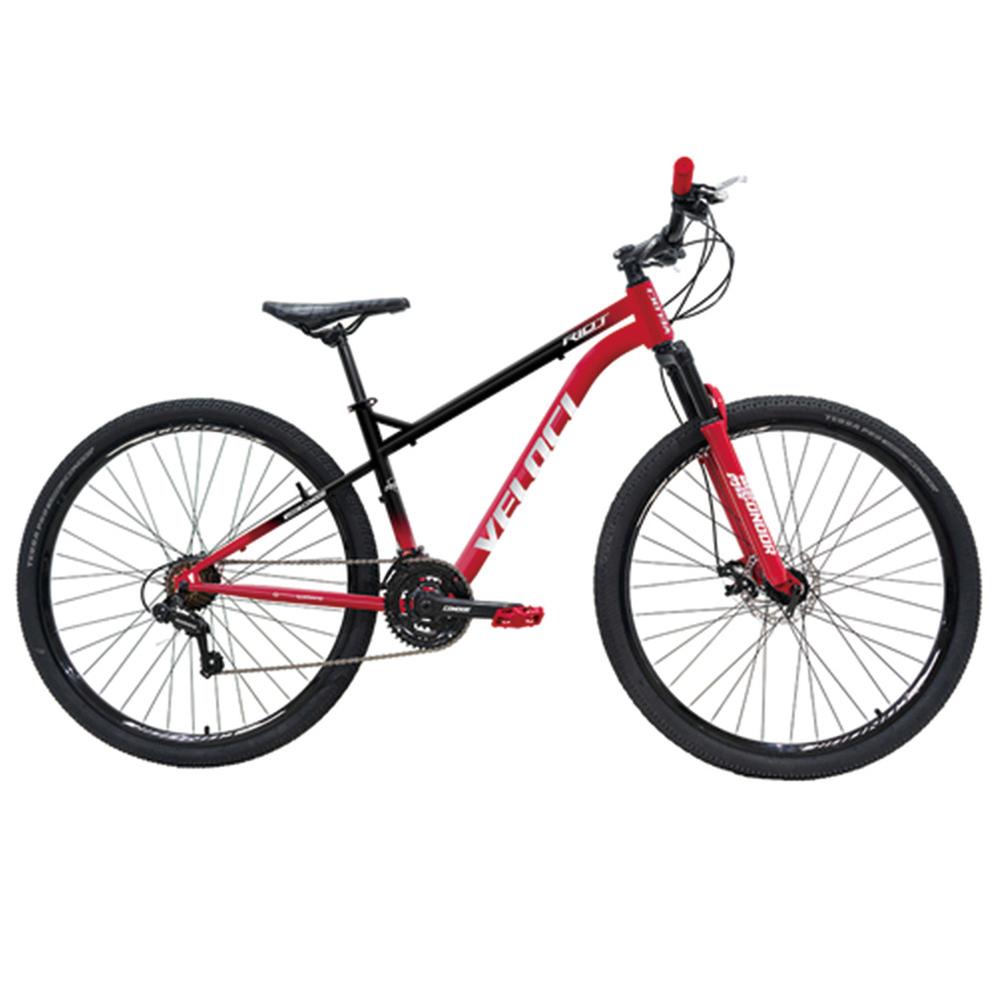 Domina cualquier camino con la bicicleta de montaña Riot de Veloci. Sus 21 velocidades, freno delantero de disco y suspensión frontal te garantizan un manejo preciso y cómodo en todo momento. No pierdas la oportunidad de experimentar la emoción de recorrer los senderos con este modelo rodada 26 en color rojo.