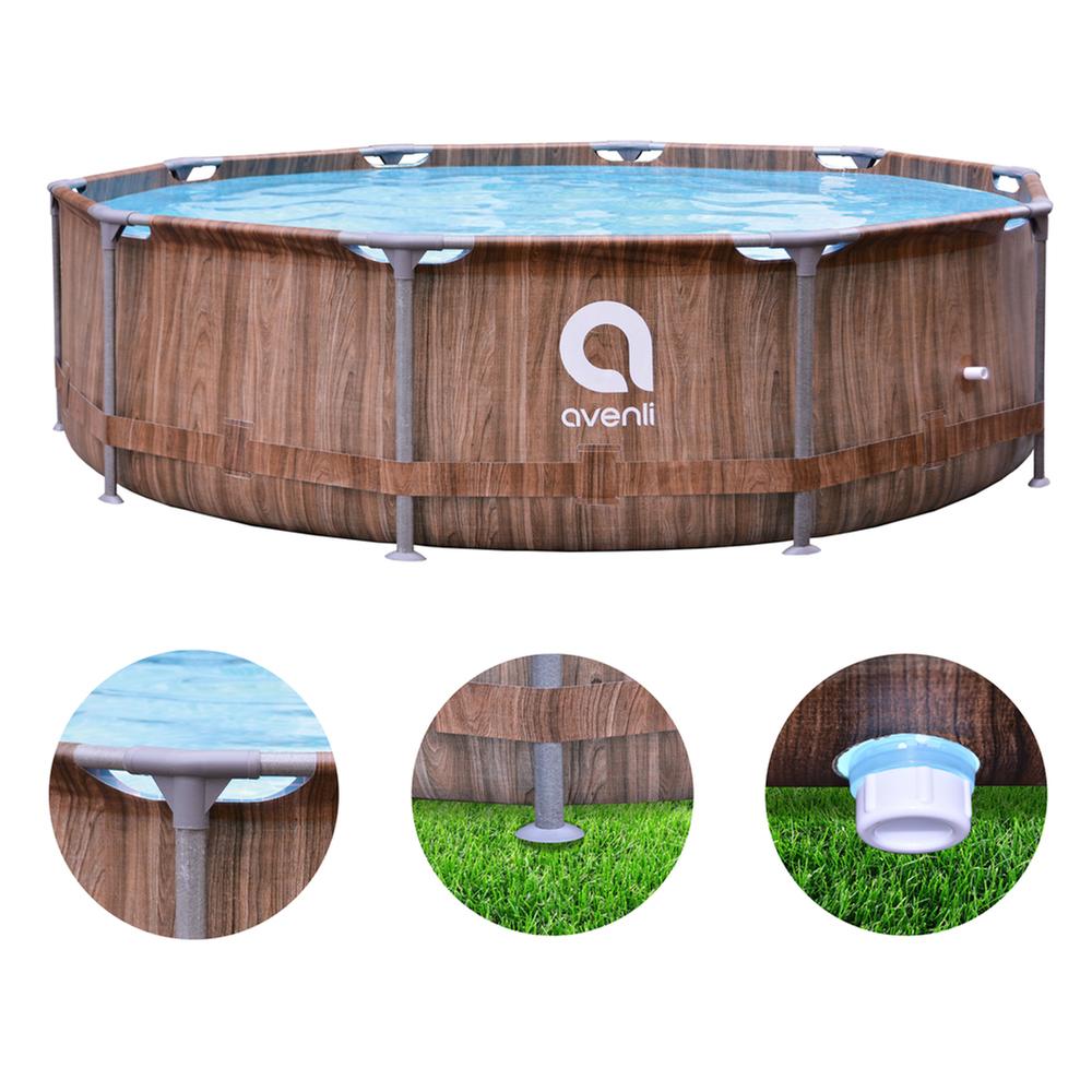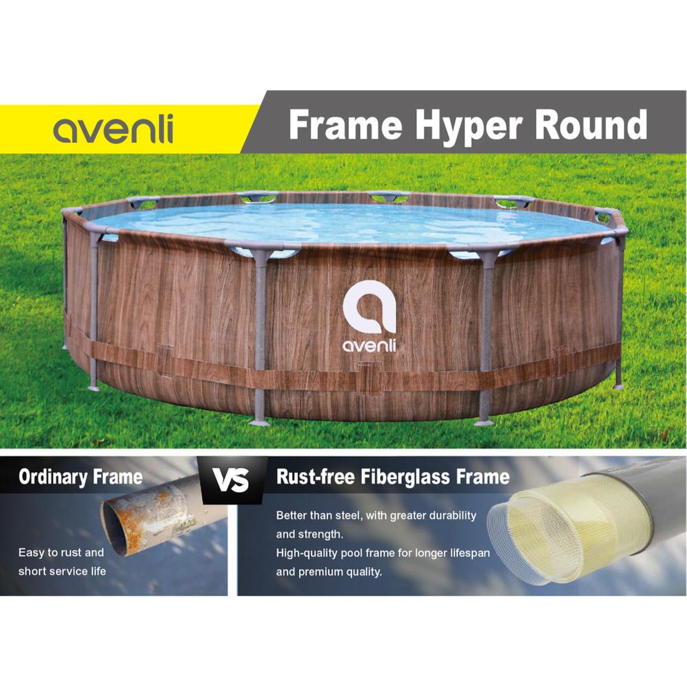 Añade un toque de lujo al patio de tu hogar con la alberca Avenli. Este modelo destaca por su marco de fibra de vidrio de primera calidad que no se oxida, por lo que ofrece una durabilidad y resistencia superiores al acero. Con una capacidad de agua de 4672 litros y diámetro de 305 cm, tendrás horas de refrescante entretenimiento.
