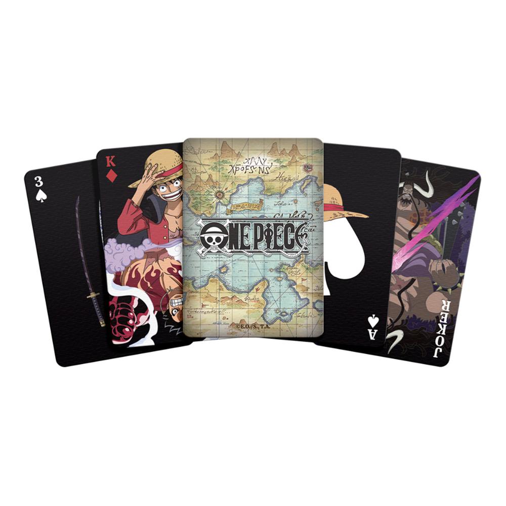 Experimenta la emoción de One Piece con el juego de naipes Novelty. Desde tesoros ocultos hasta épicos enfrentamientos, lleva la magia del popular anime a tu mesa de entretenimiento. Prepárate para un inigualable viaje con sus vibrantes ilustraciones y detalles auténticos de tus personajes preferidos. Cada una de las 54 cartas de póker incluidas cuenta una historia por sí misma.