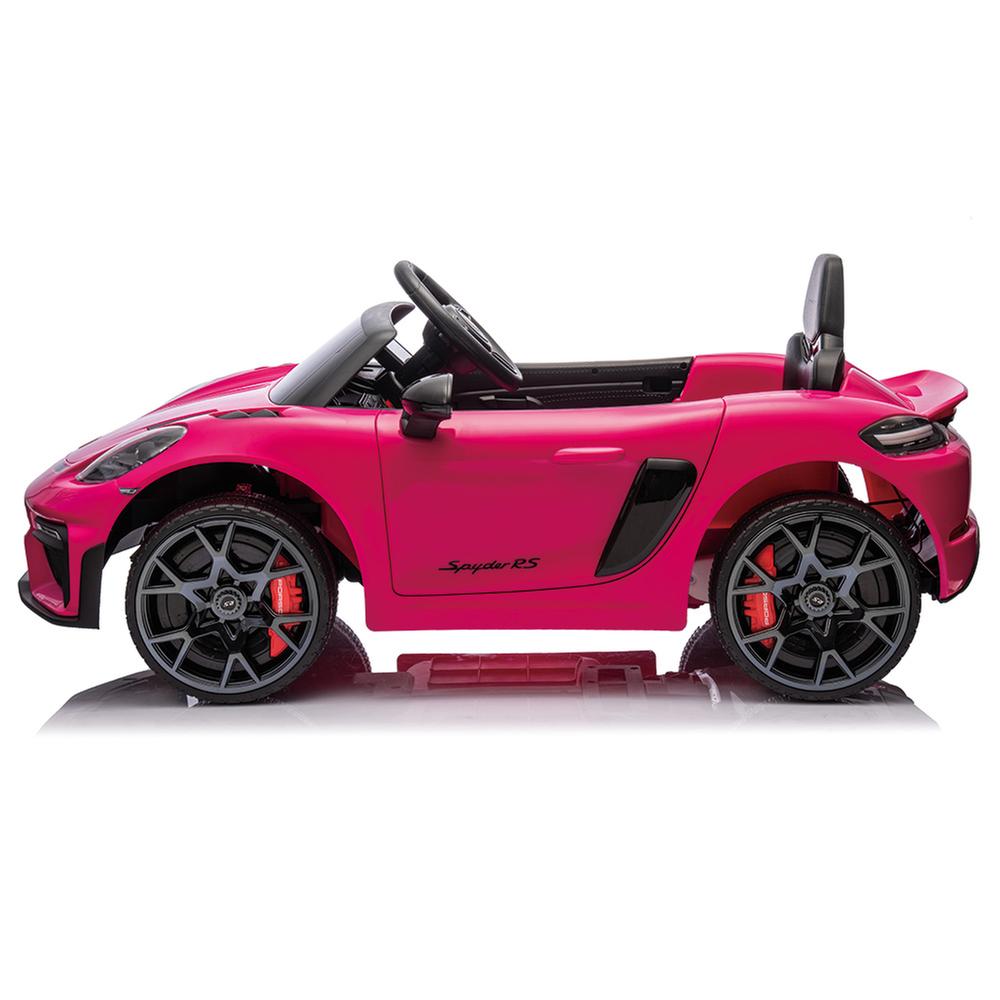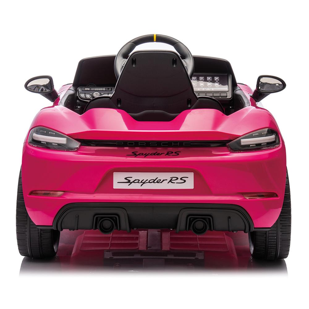 El vehículo montable Porsche Spyder de Injusa es el regalo perfecto para cualquier niño aventurero. Con una batería de 12 V con dos motores, este modelo en color rosa les proporciona dos velocidades, reversa y alcanza un máximo de 6 km/h. Se caracteriza por su apertura de puertas, luces delanteras y traseras, botón de encendido, sonidos y mucho más. Soporta un peso de hasta 30 kg y tiene llantas con banda de goma para garantizar esparcimiento y emoción mientras conducen.