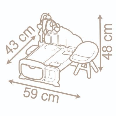 El dormitorio Smoby Baby Nurse se divide en dos áreas: zona de descanso y de comidas. Cuenta con una mesa giratoria con silla, una mesa-cama para cambiar al bebé, marco de fotos personalizable, juguete móvil mecánico y varios espacios de almacenamiento. Incluye un muñeco con función de pipí, además de 19 entretenidos accesorios, como cámara de vigilancia, intercomunicador con sonidos de nana, pañal, biberón, plato, jabón de manos y termómetro mecánico. Atributos: Empaque: caja Increíble dormitorio con dos diferentes áreas de juego Apto para muñecos bebé de hasta 42 cm Marco de fotos personalizable Intercomunicador con sonidos de nana Cepillo de dientes y cuchara mágica Incluye muñeco de 30 cm y 19 accesorios que complementan las amplias funciones Favorece la imaginación y creatividad de tus niños Artículos Incluidos: 1 Edad Recomendada: 3 años en adelante Composición/Material: Plástico Cuidados De Uso: Peligro de asfixia: contiene piezas pequeñas Marca: Smoby Modelo O Estilo: 220379 Garantía: 30 días Medidas Aproximadas del articulo Largo (Cm): 59 Ancho (Cm): 43 Alto (Cm): 48