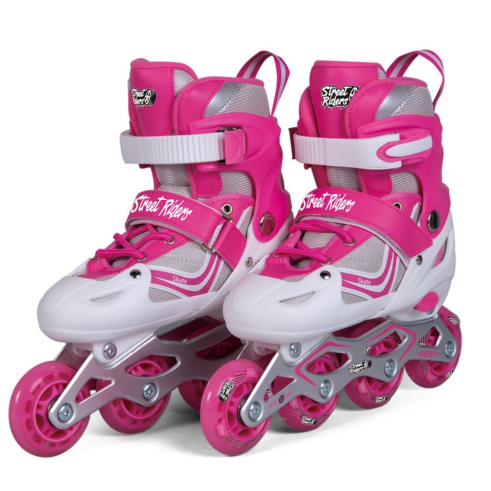 Convierte tus paseos en una emocionante experiencia con los patines en línea Street Riders. Tienen freno trasero para una precisa desaceleración y agujetas para un perfecto amarre. Su base de aluminio y cuatro ruedas de PU 82A garantizan una larga vida útil. Este ajustable par grande te ofrece un sofisticado modelo en color rosa para patinar con estilo por donde quieras.