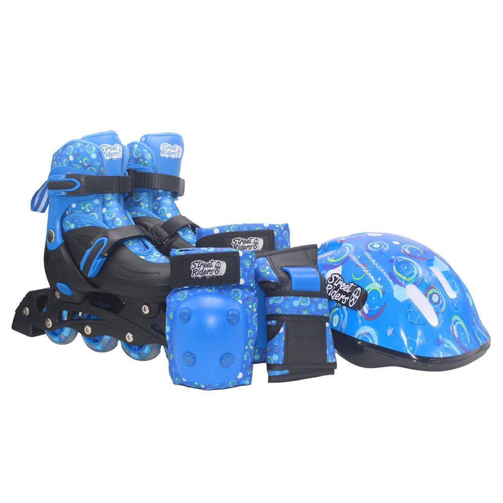 Set De Protección Street Riders Coderas, Rodilleras Y Casco Azul