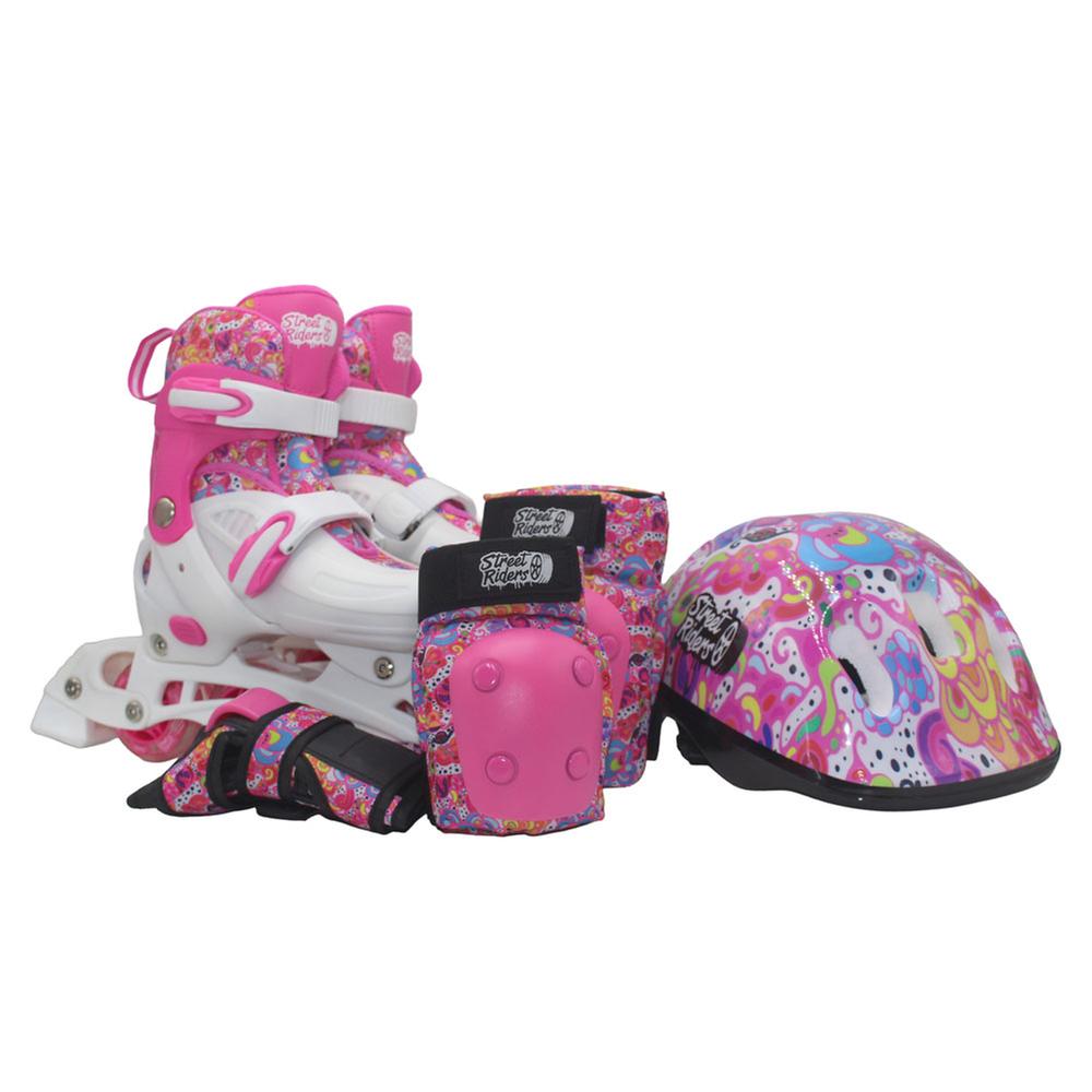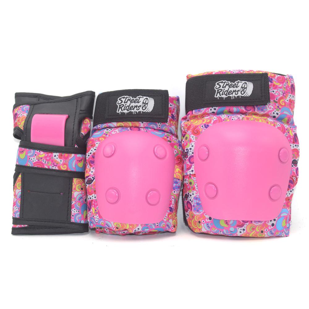 Set De Protección Street Riders Coderas, Rodilleras Y Casco Rosa