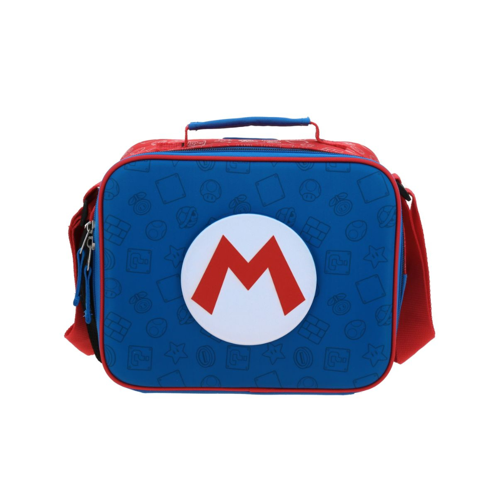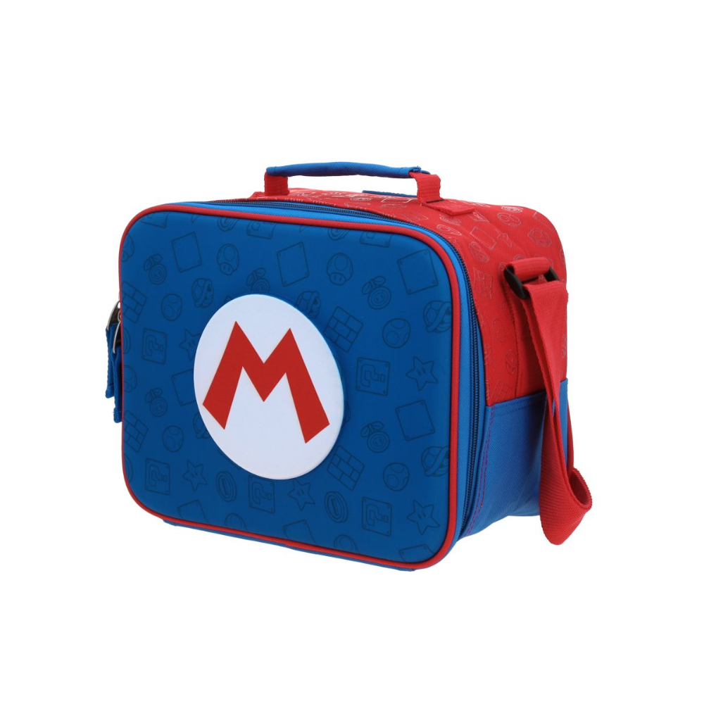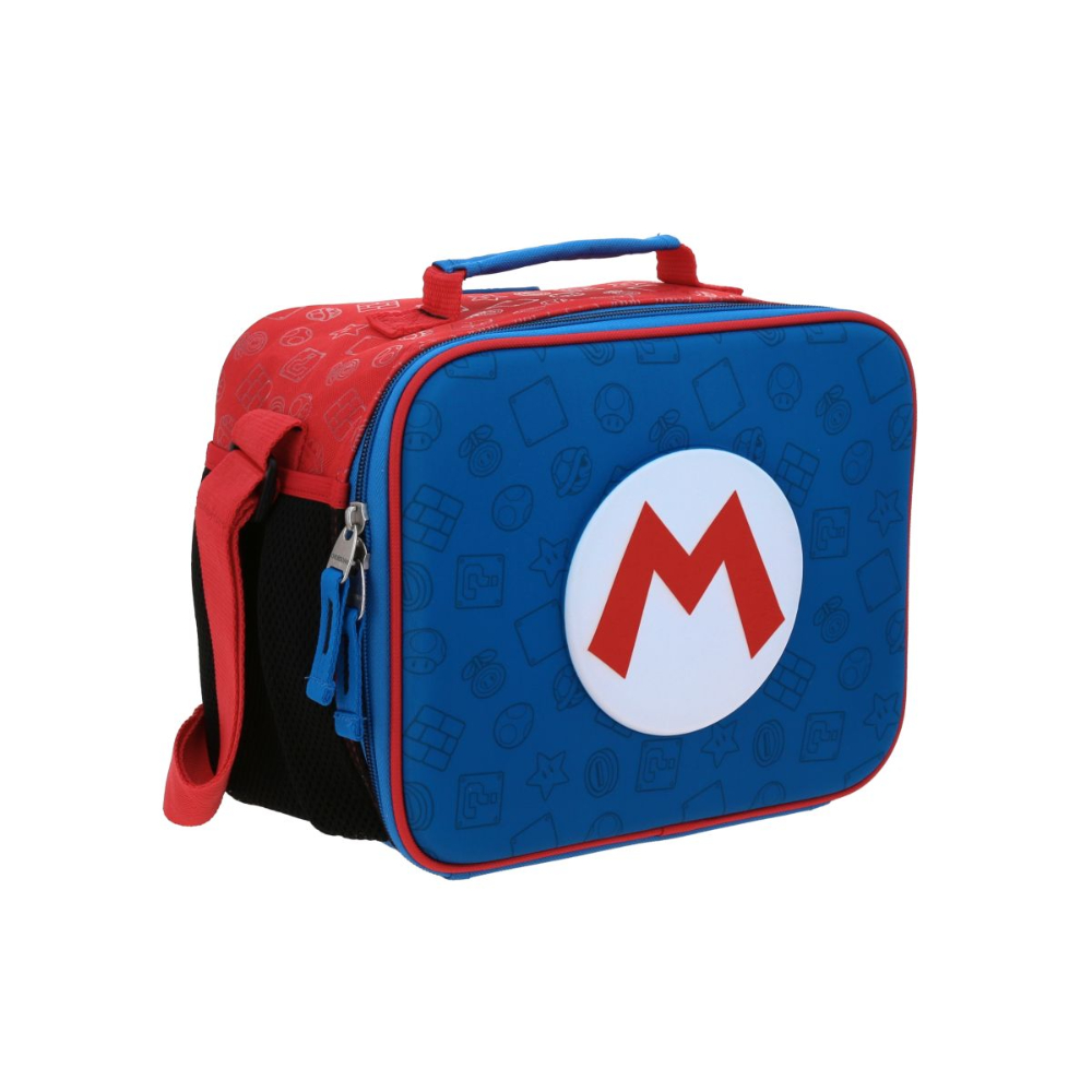 Haz que la hora de comer sea la misión más emocionante del día con la increíble lonchera de Chenson. Diseñada con el icónico logo "M" de Mario en un relieve central destacado y un fondo azul vibrante con patrones grabados, esta lonchera es el accesorio perfecto para todo fan. Su diseño funcional incluye un compartimento principal espacioso y térmico, ideal para mantener tus alimentos y bebidas frescos durante todo el día. Es ligera, resistente y cuenta con una cómoda correa ajustable, combinando la magia de Nintendo con la durabilidad característica de Chenson.