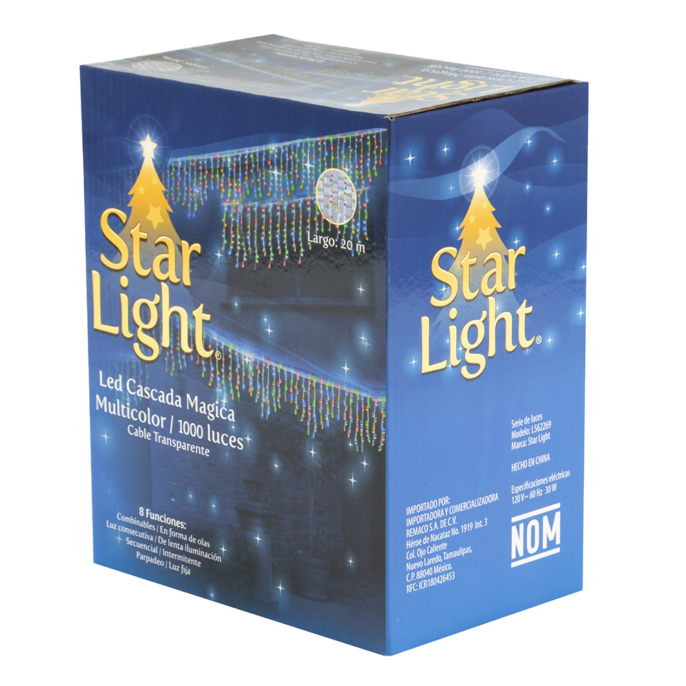 Ilumina tu hogar dándole un toque mágico con la Cascada Led de la marca Star Light. Con su luz multicolor crea un efecto visual espectacular, ideal para ventanas, fachadas o jardines. Su diseño es resistente, eficiente, fácil de instalar y cuenta con 20 metros de largo perfecta transformar cualquier espacio. Te ofrece una iluminación brillante y duradera que añade un toque dinámico y divertido a tu decoración.
