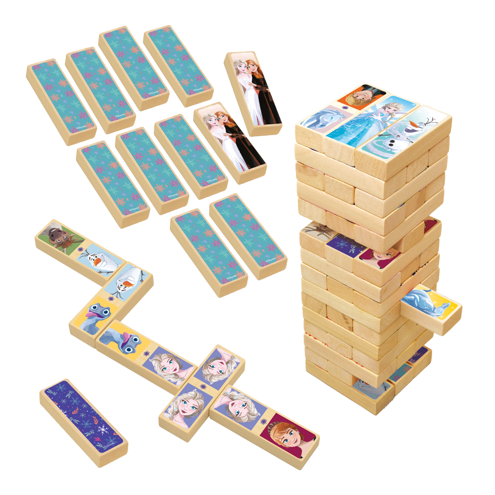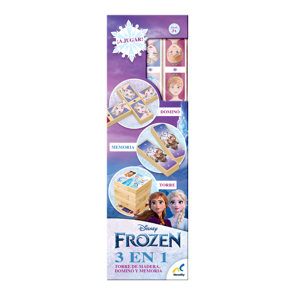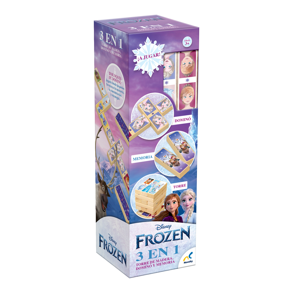 Con la Torre de Madera 3 en 1 Novelty no sólo pondrás a prueba tus habilidades de equilibrio, sino también disfrutarás muchos momentos de diversión. Esta edición con tus personajes favoritos de Frozen incluye otras opciones de juego, como dominó y memoria, para cambiar de dinámica cuando quieras. Además, es perfecto para ayudar al desarrollo espacial, simetría e instintos de tus niñas.