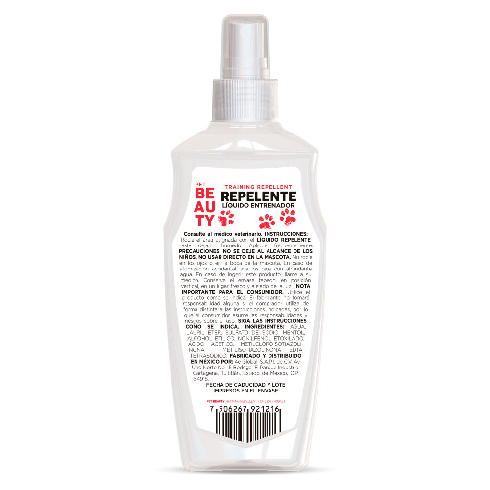 El Repelente Líquido Entrenador de la marca Pet Beauty es el auxiliar perfecto para alejar a los perros de ese lugar especial en el que no quieres que orinen o defequen, además de garantizarles un olfato seguro a ti y a tus mascotas donde se aplique el producto.