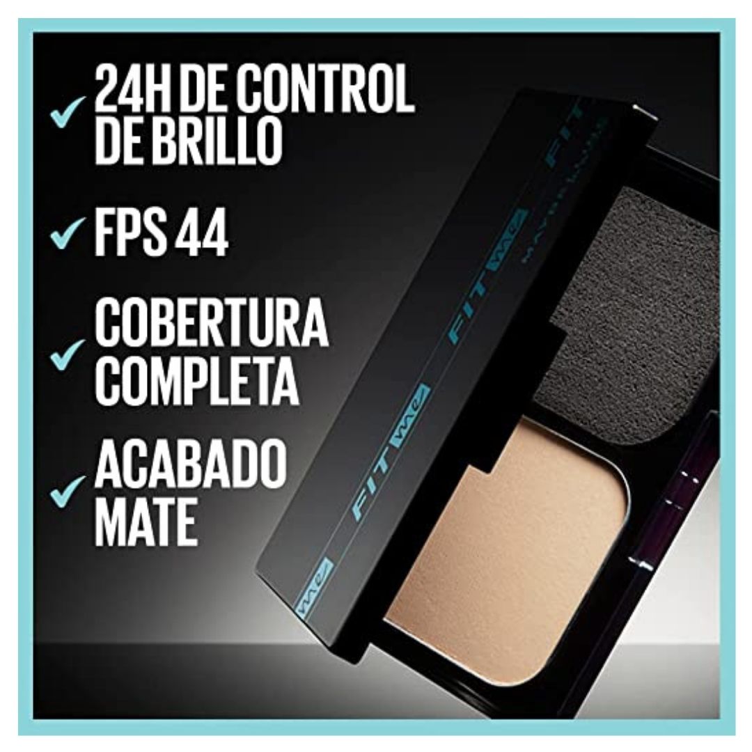 Luce un rostro perfecto y natural con la Base en Polvo Maybelline Fit Me y disfruta de su alta cobertura con un acabado mate resistente al agua. Le brinda protección a tu piel de hasta 24 horas, controlando el brillo y resguardándola de los rayos solares gracias a su FPS de 44. Conoce su fórmula ligera y encuentra tu tono ideal