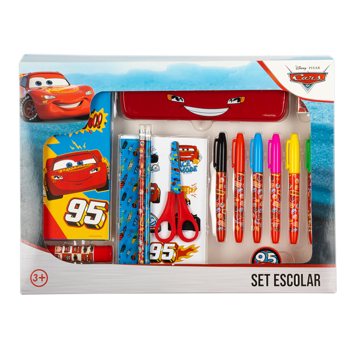 Regresa a clases con el Set Escolar de Cars Disney que incluye una lapicera, colores, plumones, lápices, tijeras, regla, goma y sacapuntas. Tendrás una gran variedad de útiles escolares con un divertido diseño, ideal para llevarlo en tu mochila y estar listo en cada clase.