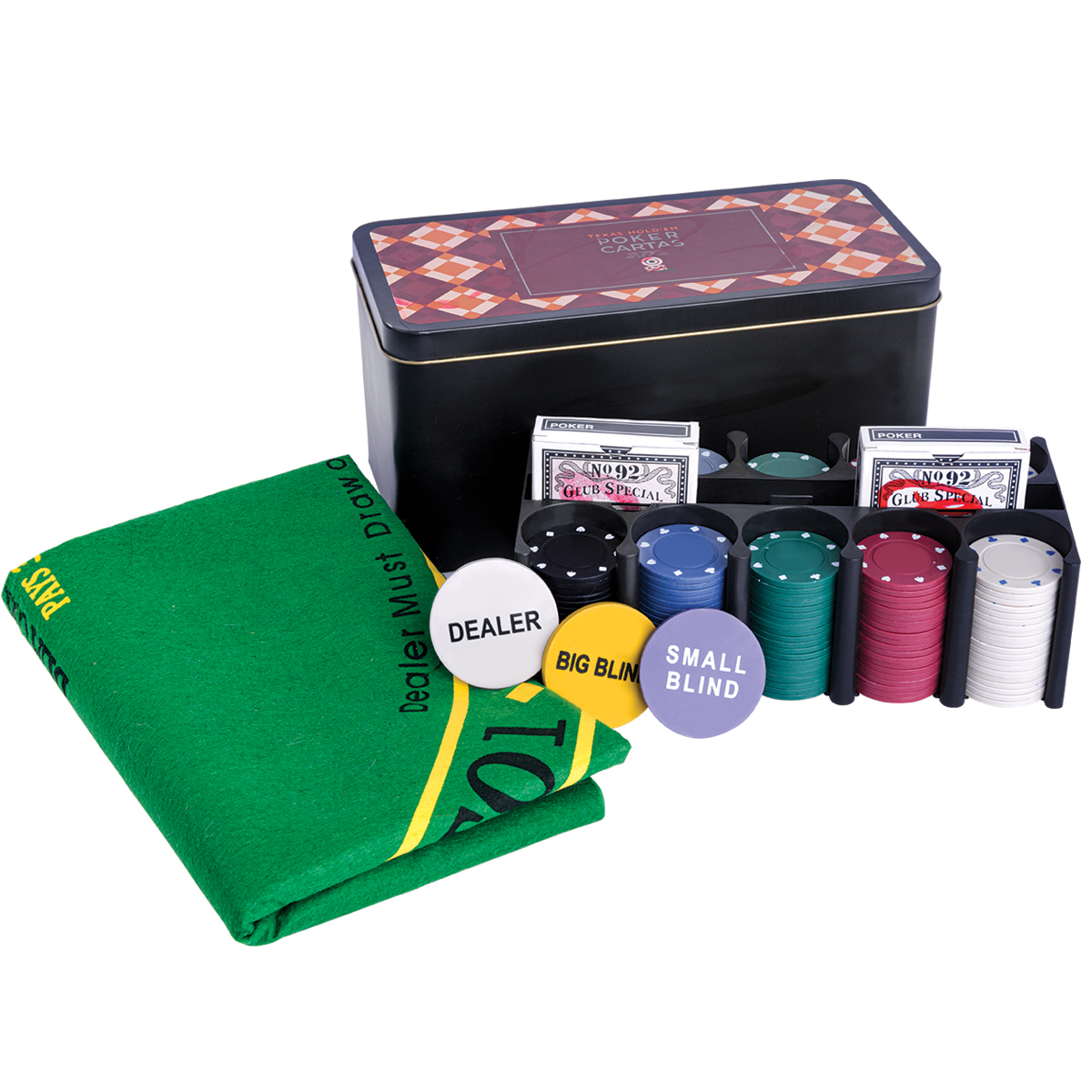Este Juego de Póker Pip Games es perfecto para mantenerse entretenido durante horas en esas típicas reuniones con la familia o amigos. Incluye 200 fichas con una base para acomodarlas, dos cajas de cartas, tapete y otras piezas complementarias que mejorarán cada ronda. Todo estará listo para repartir o apostar quién tiene la mejor mano y disfrutar la experiencia completa en tu casa como en un casino de verdad.