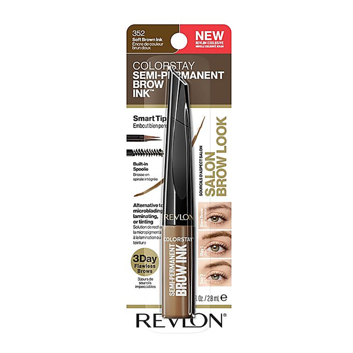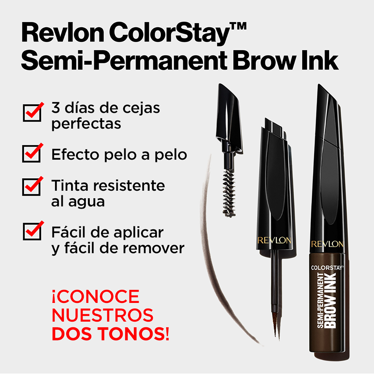 Colorstay™ Semi Permanent Brow Ink ¿Quieres cejas perfectas? Revlon trae para ti la nueva tinta Colorstay™ Semi-Permanent Brow Ink. Es la primera tinta de ceja en el mercado masivo que te dará la oportunidad de tener unas cejas perfectas hasta por 3 días sin invertir tanto tiempo y dinero. Esta tinta de cejas es fácil de aplicar ya que es un multi-función 5 en 1: rellena, delinea, intensifica, cubre o perfecciona gracias a su punta inteligente que te ayudará a crear trazos con efecto pelo a pelo para dejarte un efecto tipo microblanding o cejas laminadas como de salón. También tiene un cepillo estilizador para cepillar, difuminar y perfeccionar tu look en las cejas. Cuenta con polímeros líquidos que crean una película para sellar los pigmentos. No se transfiere, es a prueba de aguas y de manchas. Tampoco lastimará tu piel. ¡Pruébalo en 2 tonos distintos!