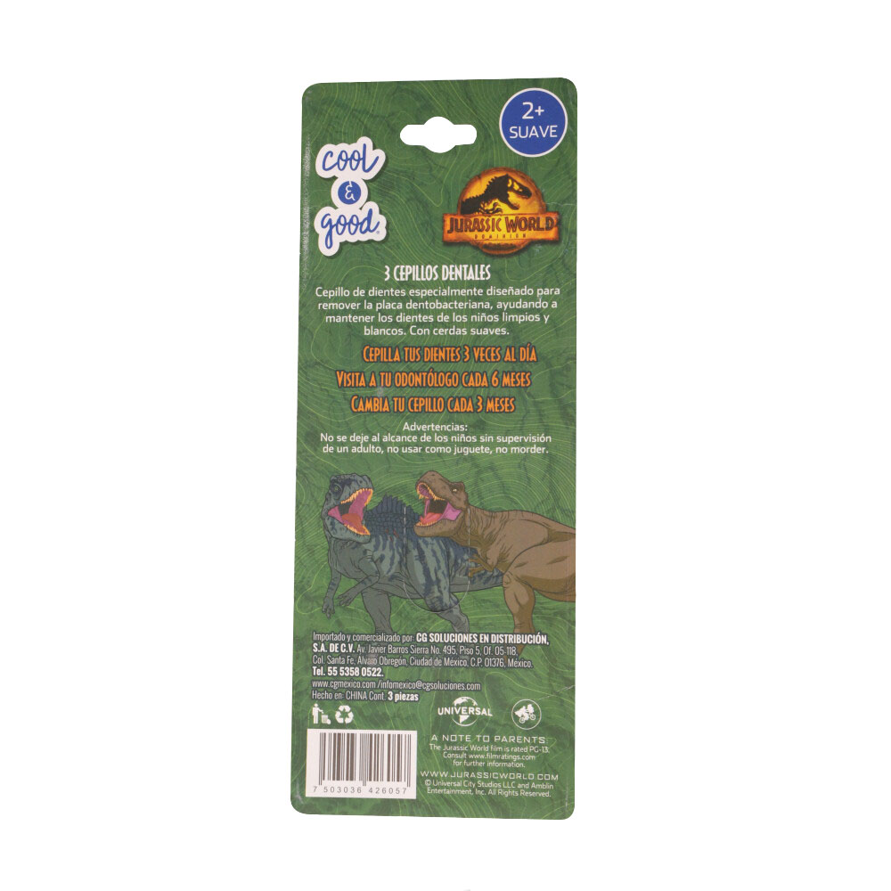 Cepillo Dental Infantil Cool & Good Suave Jurassic World 3 Piezas