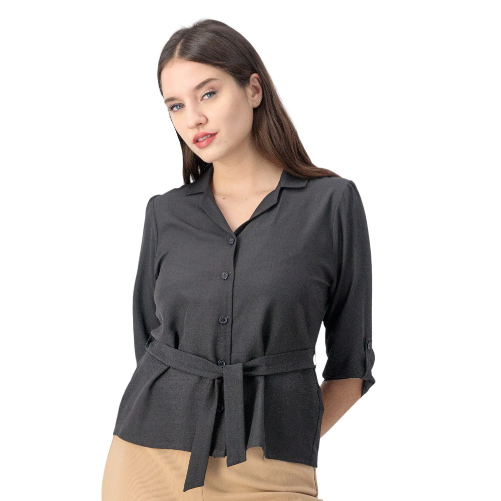 Blusa Red Sky Mujer Cuello Camisero Fruncido Frontal
